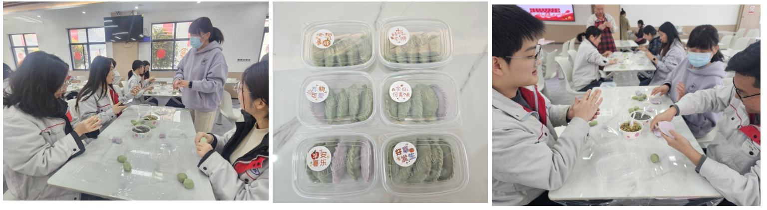 制作過程中,老師向大家講解關于艾餃的家庭故事和清明習俗,大家了解了清明吃艾餃的歷史及其所蘊含的深厚文化底蘊和民俗意義。在面點師傅的指導下,大家將清明時節碧綠的艾草汁融入雪白的糯米粉,手中的面團在掌心里輕攏慢揉。和面、揉面、包餡,分工合作,制成了一個個翠綠飽滿、餡料豐足的艾餃。
